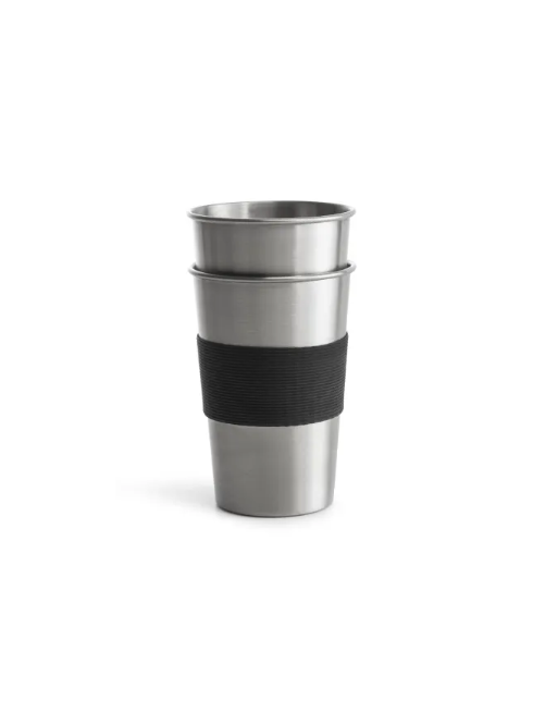 Praktisk och snygg stapelbar stålmugg för uteliv och utflykter. Med avtagbar silikongördel för bättre grepp och värmeskydd.