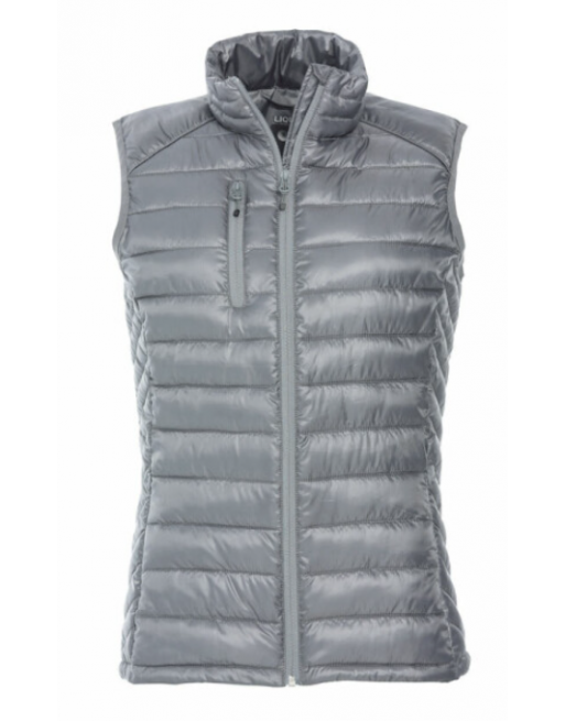 Modern lättvadderad väst. Tre fickor med dragkedjor samt två innerfickor. Hörlursögla på insidan av halsöppningen.