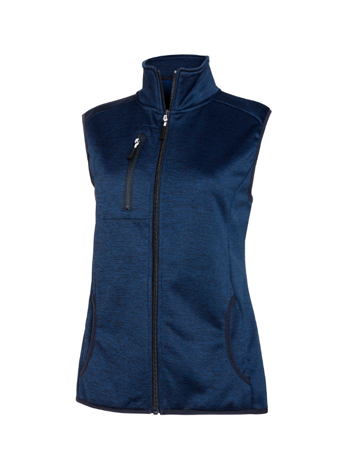 Följsam och mjuk väst i polarfleece. Tillverkad i certifierad återvunnen polyester. Hel dragkedja som går upp i kragen samt frontfickor alla med dekorativa synliga YKK-dragkedjor. Framflyttad sidosöm för god passform. Dekorativ stickning i flatlock och resår i nederkant och ärmhål, allt ton i ton